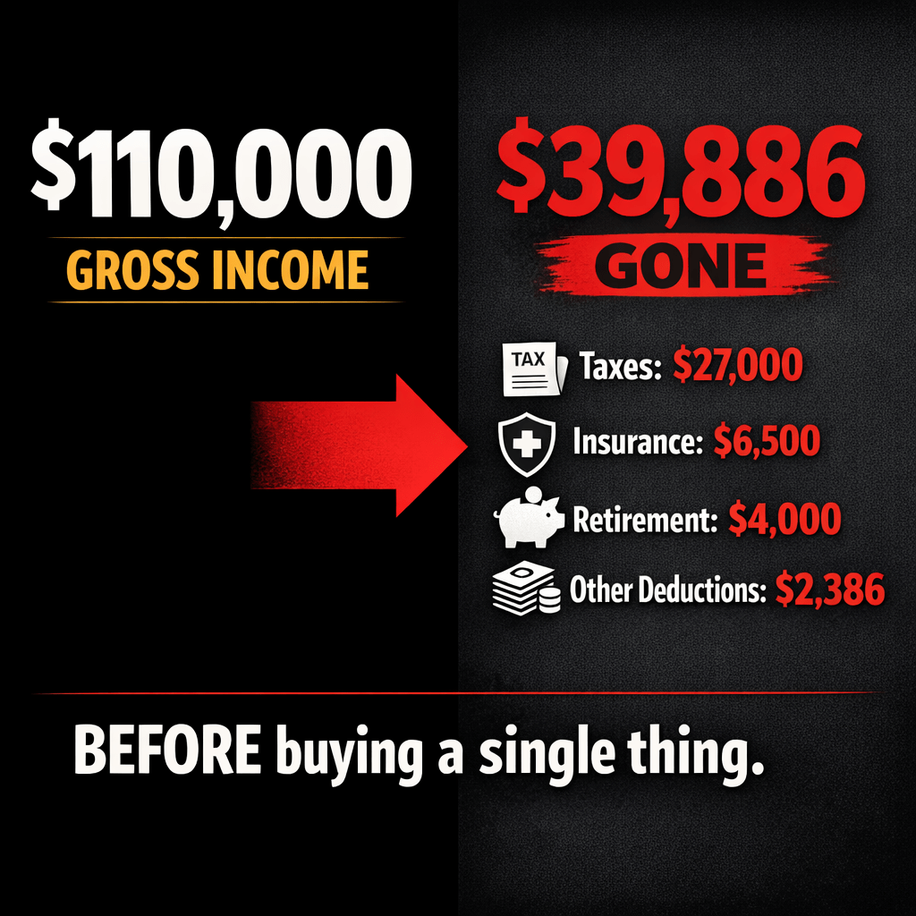 You make $110,000 combined. Six figures. That used to mean something, right? That used to mean comfortable.