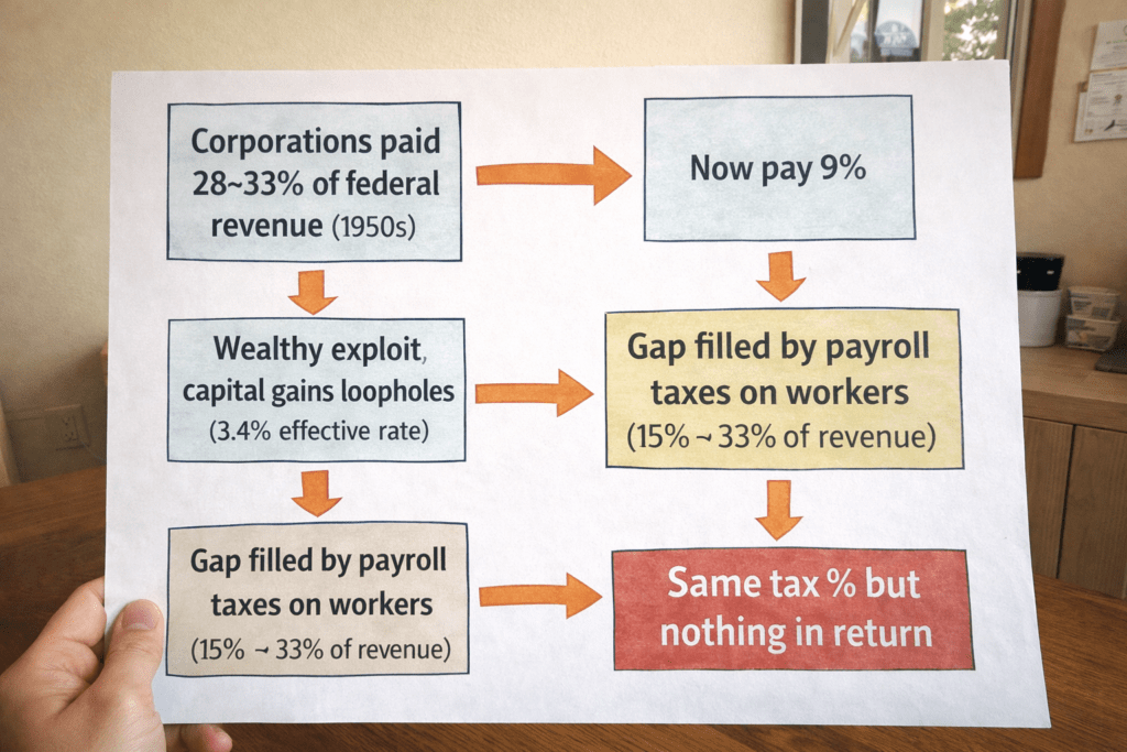 The problem is a machine designed to extract everything it can from people who work for a living—while the people who own things pay almost nothing.